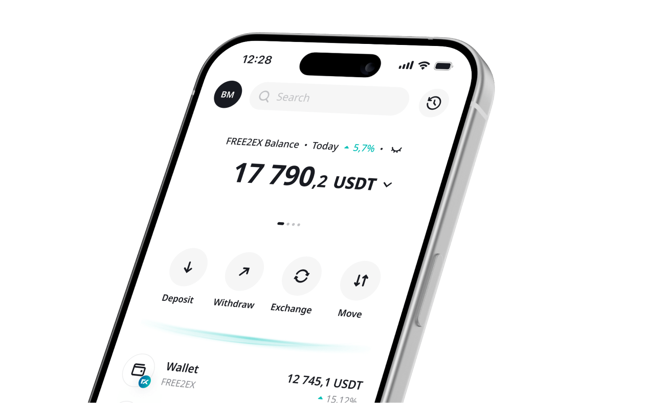 Take full control of your assets with the FREE2EX app: deposit, exchange, transfer, and withdraw.